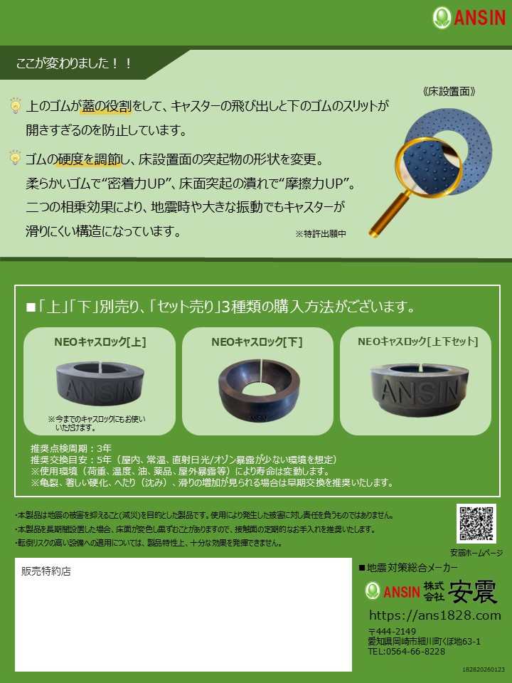 通常時の環境によっては安震アジャスターが適さない場合もありますので、