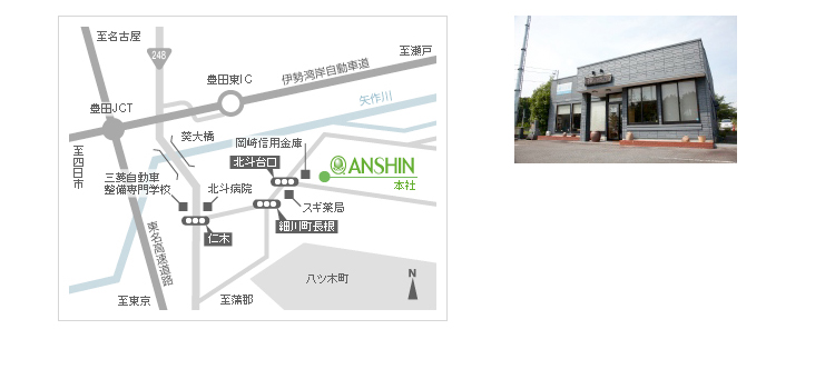 | 本社 | 〒444-2149 愛知県岡崎市細川町くぼ地63-1 [map] TEL: 0564-66-8228 / FAX: 0564-45-1378 URL: https://ans1828.com Email: ans1828@anshinsystem.com |