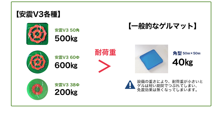 特許取得構造により、耐荷重が高く、可塑剤が含まれていない為、溶解しにくい素材です。 衝撃吸収性の特徴を持ち、つぶれ防止の高減衰ゴムで出来ている高品質な製品です。
